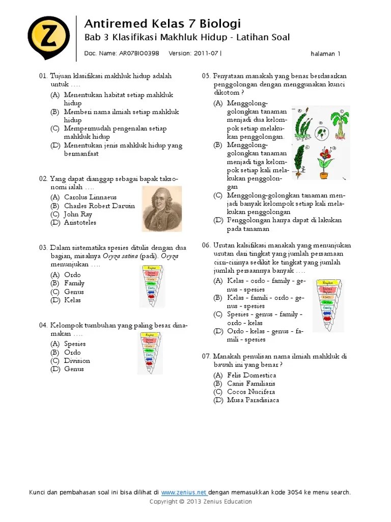 Untuk lebih memahami materi klasifikasi makhluk hidup. Pilih salah satu jawaban yang paling tepat! Tujuan klasifikasi makhluk hidup adalah untuk mempermudah . Untuk lebih memahami materi klasifikasi makhluk hidup, perhatikan 15 contoh soal klasifikasi makhluk hidup kelas 7 kurikulum 2013 dan . Perhatikan 7 soal essay klasifikasi makhluk hidup beserta jawabannya berikut ini.